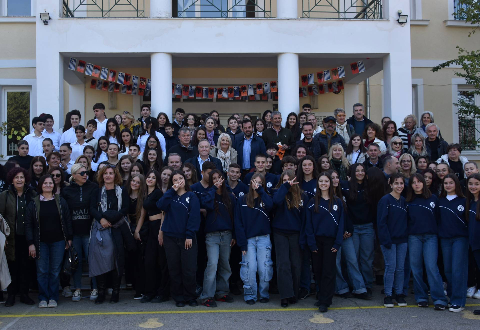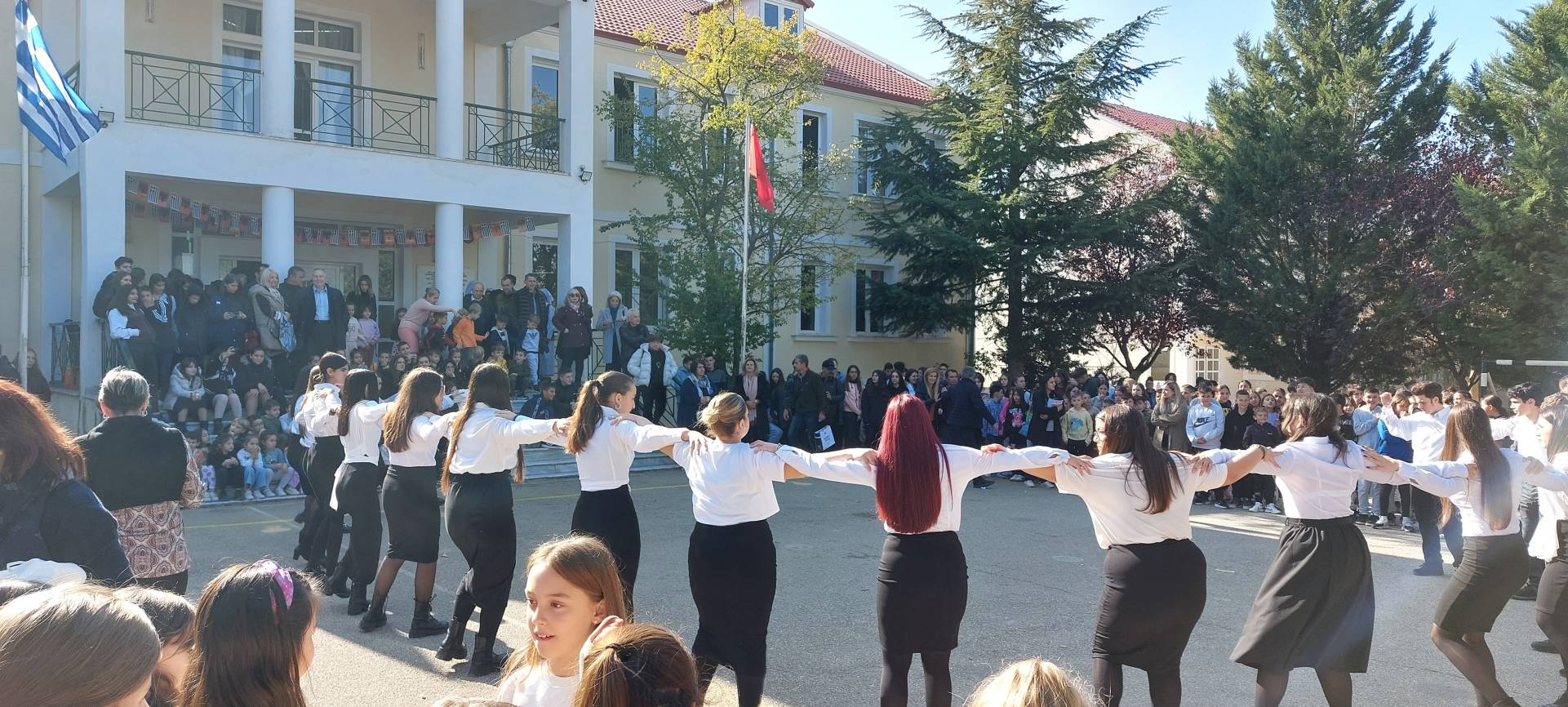 Εκπαιδευτική Δράση στο Ελληνοαλβανικό Εκπαιδευτήριο «ΟΜΗΡΟΣ» στην Κορυτσά της Αλβανίας. Τη Δευτέρα 4 Νοεμβρίου 2024, συμμετείχαμε στην εκπαιδευτική Δράση της ΔΔΕ Δυτικής Θεσσαλονίκης, στο Ελληνοαλβανικό Εκπαιδευτήριο «ΌΜΗΡΟΣ», στην Κορυτσά της Αλβανίας. Η Δράση είχε ως σκοπό τη γνωριμία, την αλληλεπίδραση και την επικοινωνία με τους/τις εκπαιδευτικούς και τους/τις μαθητές/τριες του Σχολείου στην Κορυτσά, καθώς και την από κοινού ανάληψη πρωτοβουλιών για την υλοποίηση προγραμμάτων εκπαιδευτικού και πολιτιστικού χαρακτήρα. Ακολούθησε επίσκεψη των εκπαιδευτικών στο Λύκειο «ΠΛΑΤΩΝ», καθώς και στο Ελληνικό Προξενείο της Κορυτσάς– Οικία του Νομπελίστα ποιητή μας και τέως Έλληνα Πρόξενου στην Αλβανία, Γεώργιου Σεφέρη. Συμμετείχαν ομάδες χορευτικών τμημάτων και χορωδιών μαθητών από σχολεία της Δυτικής Θεσσαλονίκης καθώς και η Χορωδία της Ι.Μ. Νεαπόλεως και Σταυρουπόλεως. Εκπαιδευτική Δράση στο Ελληνοαλβανικό Εκπαιδευτήριο «ΟΜΗΡΟΣ» στην Κορυτσά της Αλβανίας.