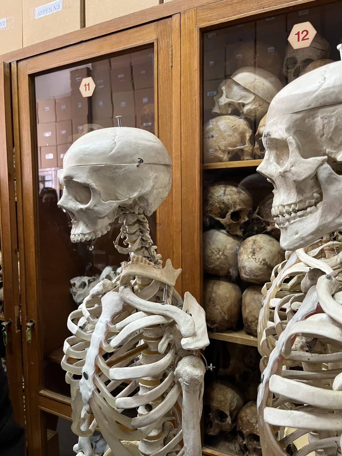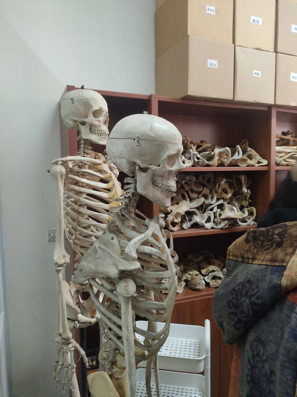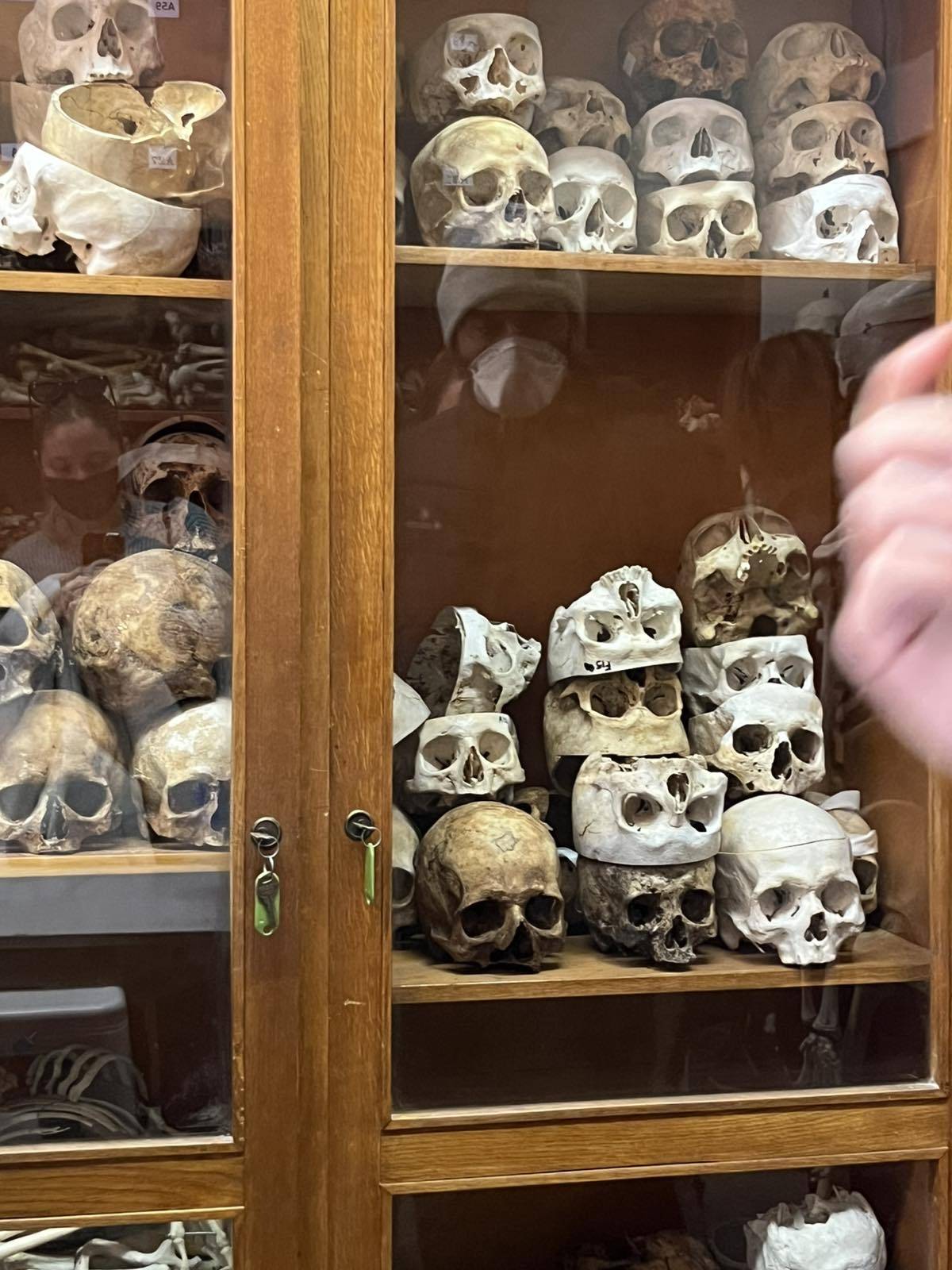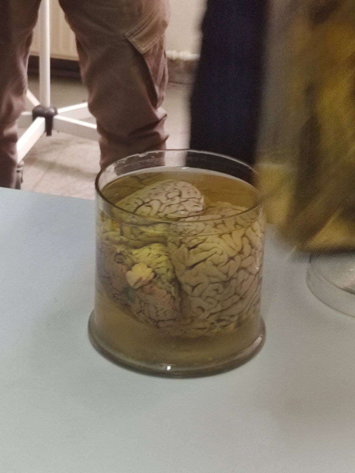 Ο Διευθυντής του εργαστηρίου κ. Παρασκευάς, μετά από μια εξαιρετική ομιλία ανθρωπιστικού περιεχομένου, συνόδευσε τους μαθητές στο εργαστήριο Ωτορινολαρυγγολόγος, όπου οι φοιτητές της ειδικότητας εκπαιδεύονταν πάνω σε πραγματικά πτωματικά εκθέματα. Χειρουργούσαν δηλαδή με τη βοήθεια μικροσκοπίου το εσωτερικό αυτί! Οι μαθητές μας ενθουσιάστηκαν και εμπλουτίστηκε δια ζώσης, η εμπειρία τους στο μάθημα της ανατομίας. Μετά περιηγήθηκαν στο μουσείο διαφόρων οργάνων (εγκέφαλο, λάρυγγα, τραχεία, βρόγχοι κλπ) και αμβλωματικών εμβρύων. Είναι ανθρώπινα όργανα που σαν καλούπια, δέχθηκαν έκχυση ειδικής κόκκινης ΡΗΤΙΝΗΣ έτσι ώστε να αποτυπωθούν οι ανατομικές λεπτομέρειες του εσωτερικού του οργάνου (π.χ. καρδιάς).